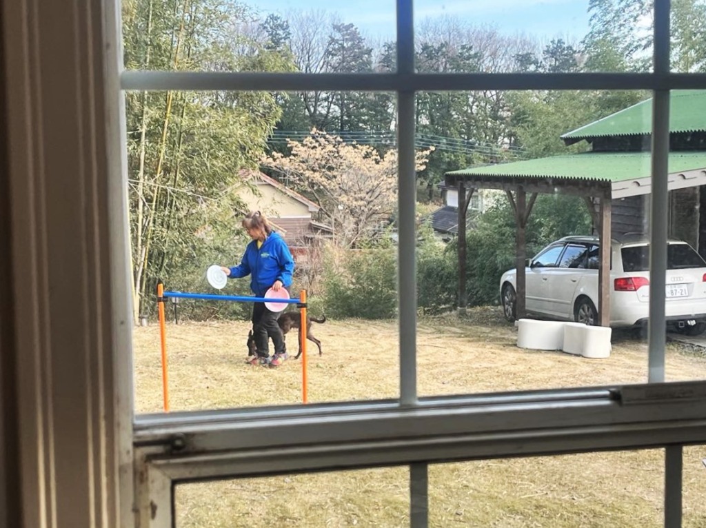 昨年芝生を植え、ちょっとしたトレーニングができるようになりました。